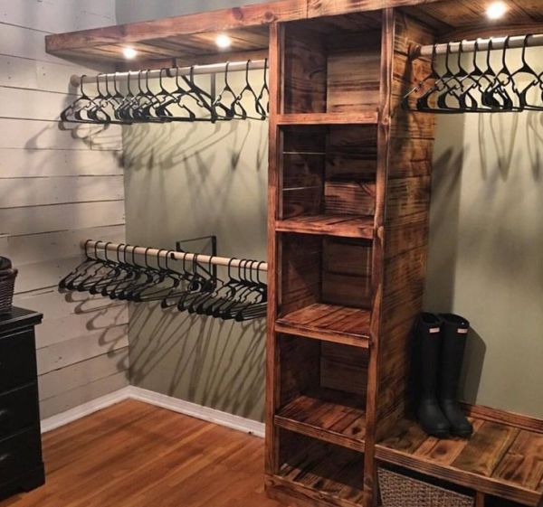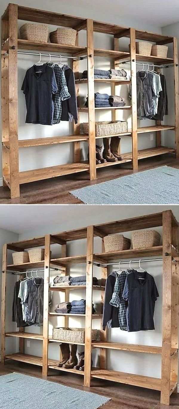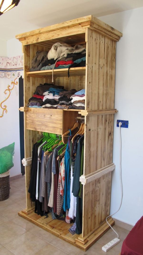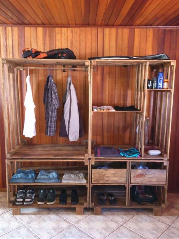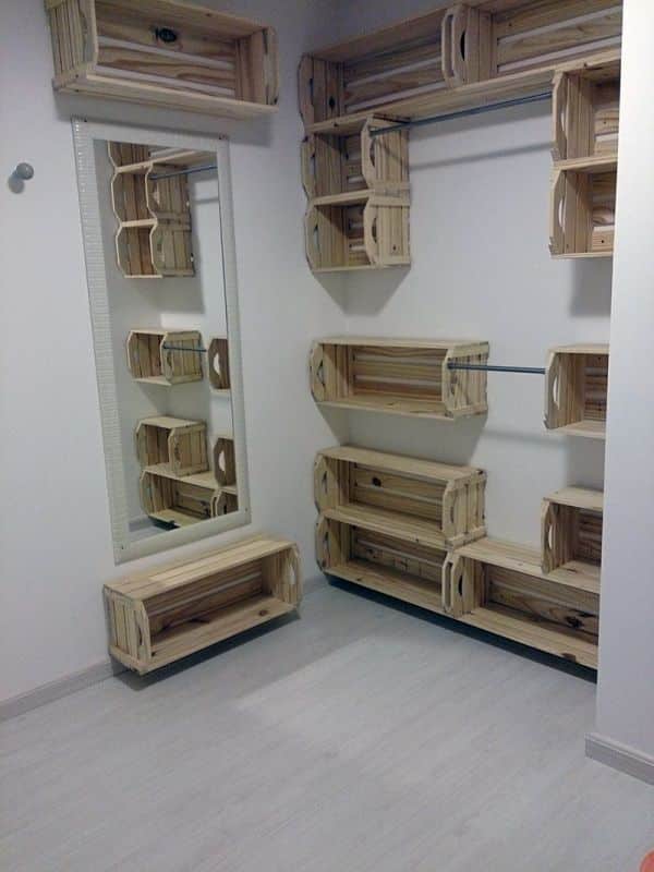 Mais ideias de guarda-roupas com caixotes de madeira.