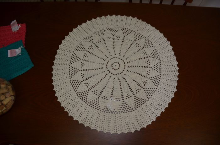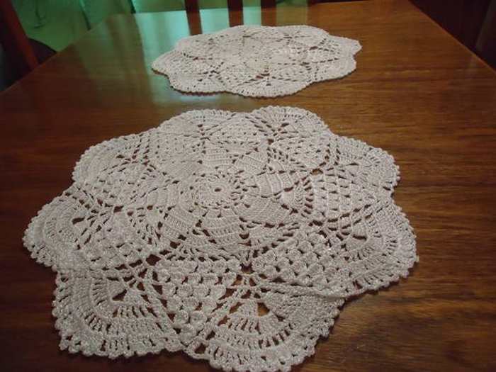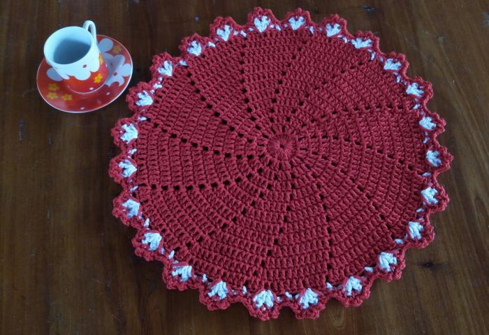 O modelo redondo de guardanapo feito com crochê também fica lindo.