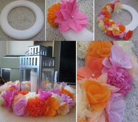 O aro deve estar em perfeitas condições., depois que todas as flores estiverem prontas, é só ir fixando elas ao aro até preencher e no final você terá uma guirlanda como essa! A sugestão foi retirada do blog: http://elaineraschella.blogspot.com.br.