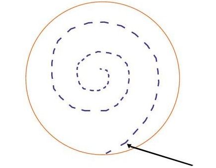 Comece fazendo as rosas. Corte círculos de feltro como na imagem abaixo; a quantidade dependerá de quantas rosas você quiser, cada círculo corresponde a uma rosa. Logo após corte todos os círculos em espiral, como mostra os pontilhados da imagem.