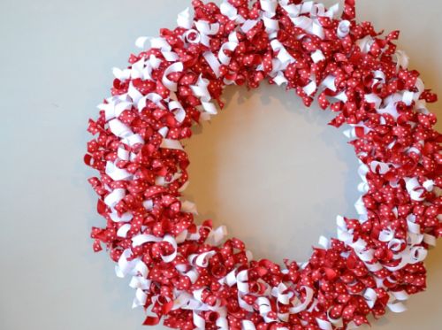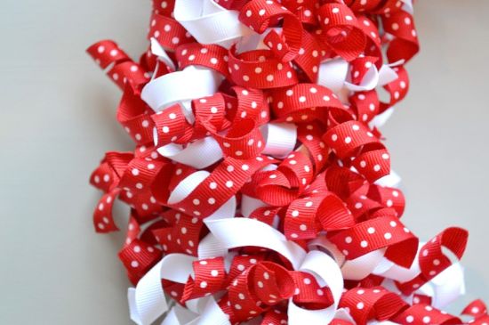 Agora, faça isso em toda a base da guirlanda e posicionando os pedaços de fita bem juntos, um sobre o outro, para que o efeito seja interessante e bem “cheio”. Ao final sua guirlanda estará pronta!