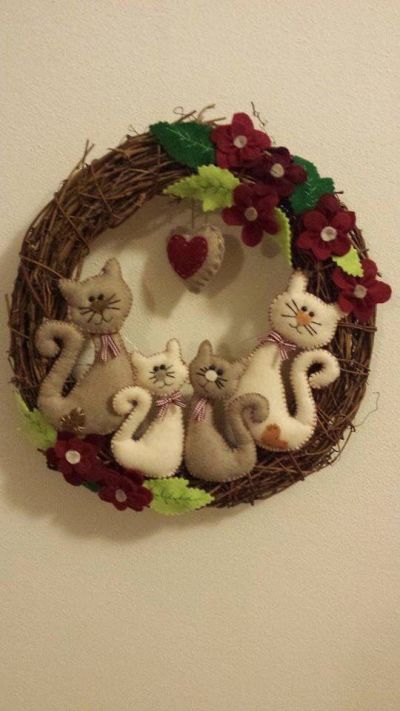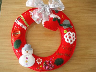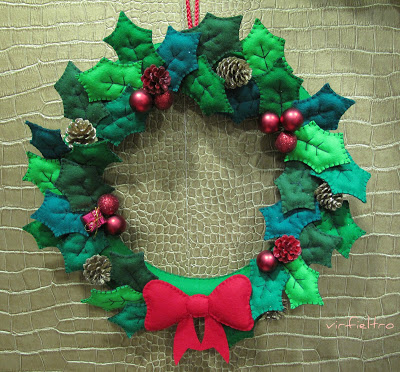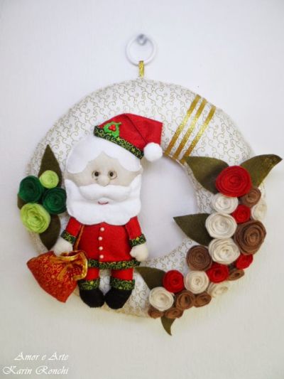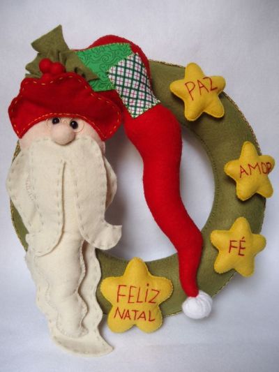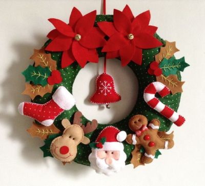 Os modelos mais elaborados de guirlanda de Natal de feltro possuem muitos enfeites natalinos de feltro e outras aplicações diversas.