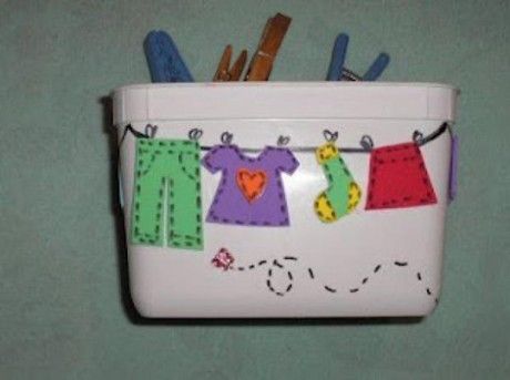 Entre as ideias criativas de artesanatos com pote de margarina há as peças funcionais, como o porta-sabão e o porta-prendedores para roupas. A dona de casa pode enfeitar os potes de margarina da maneira que desejar.