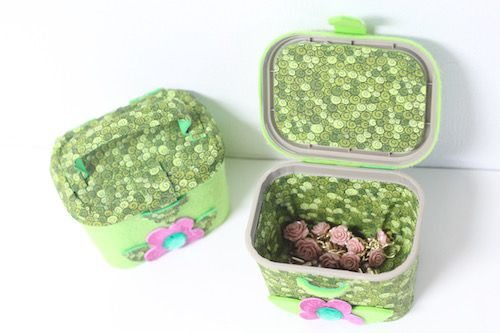As costureiras podem aproveitar o pote de margarina para guardar os seus apetrechos de costura. Faça bolsinhos na peça, alfineteiro e o que mais precisar para acomodar todas as pecinhas de costura.