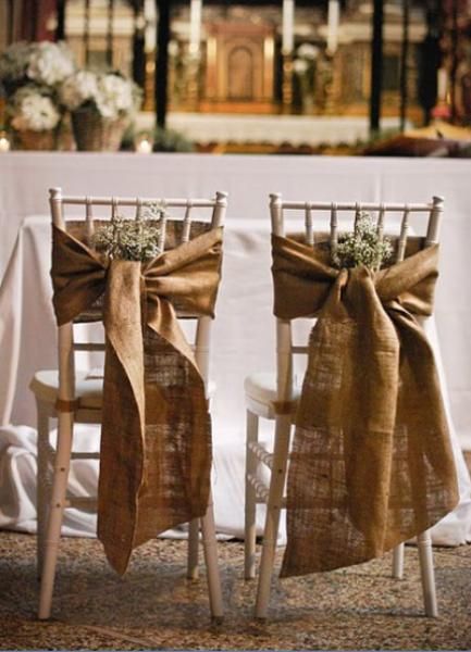 Saindo da mesa e indo para as cadeiras, use a juta para enfeitar as cadeiras de sua festa.
