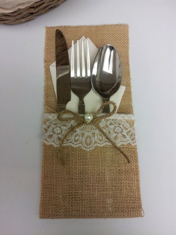Porta-talheres de juta também decora a mesa, além de ser um item funcional.