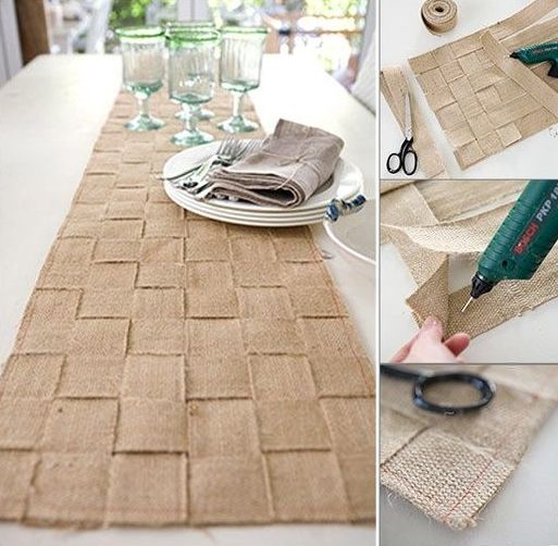 Se você quiser fazer um caminho somente com juta pode trançar fitas de juta, para garantir aquele toque especial a mais.