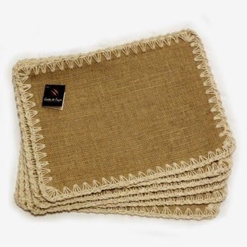 Outra opção para a mesa é o jogo americano feito com juta e acabamento com caseado de crochê.
