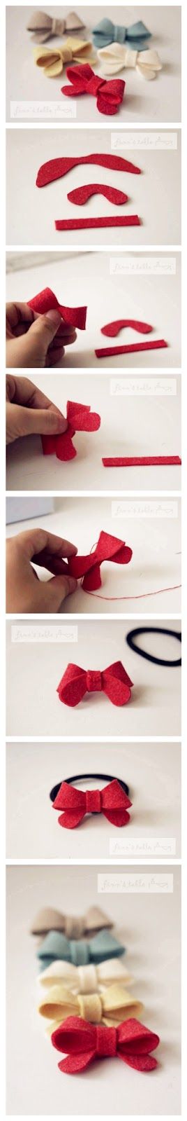 Lacinhos de retalho de feltro decoram com primor peças infantis, como tiaras, roupinhas, sapatinhos, presilhas e mais uma infinidade de peças.