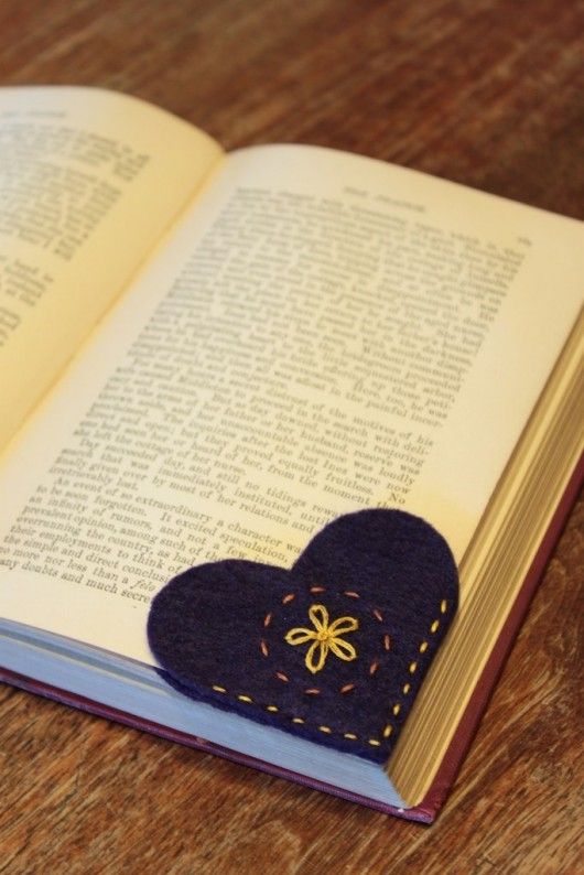 Entre as ideias de artesanato com retalhos de feltro você também pode investir em marcador de página em formato de coração feito com retalho de feltro. Se você sabe fazer bordado, pode bordar alguma coisa e incrementar ainda mais a sua peça.