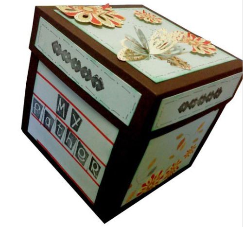 Fazer uma caixinha com papel para scrapbooking também é ótima opção para acomodar o presente ou lembrancinha de seu pai de forma charmosa. E aqui também você pode dar seu toque especial colando e aplicando os detalhes que você quiser.