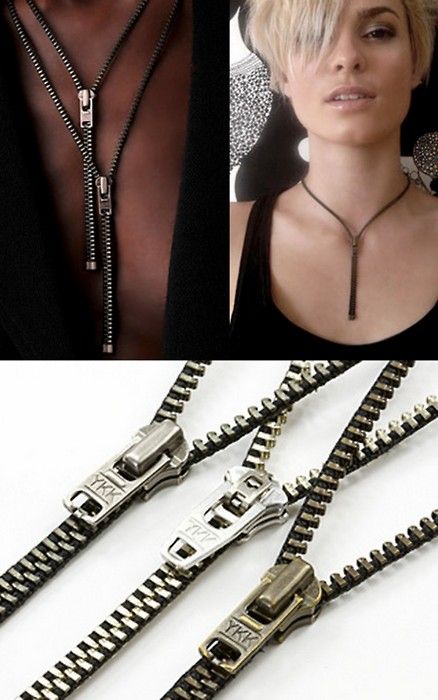 Ainda falando de seu look, faça uma pulseira com três partes de zíper que resultam em uma trança. Esta peça também pode ser um colar.