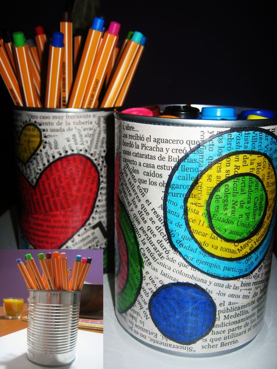- 1 porta-lápis, 1 copo, 1 embalagem de plástico, 1 lata ou o que você quiser para ser a base do seu porta-trecos;