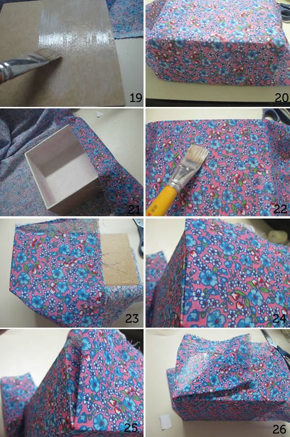 Você pode revestir a sua caixa de MDF com o material que você desejar, como papel comum, papel contact, juta, pintura e até mesmo tecido. Se você quer uma caixa forrada com tecido, cole-o ao redor da sua caixa utilizando cola para decoupage. E utilize muita cola para decoupage ao redor da caixa também, para impermeabilizar a sua peça, para que mesmo que respingue algumas gotas de água a sua caixa não seja arruinada.