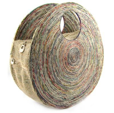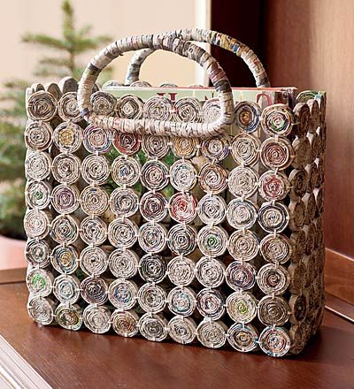 Até bolsas podem ser feitas com jornal. Se você quiser a base da bolsa pode ser feita de tecido, como a juta, por exemplo, que tem visual rústico e se harmoniza com o visual também mais rústico do jornal.