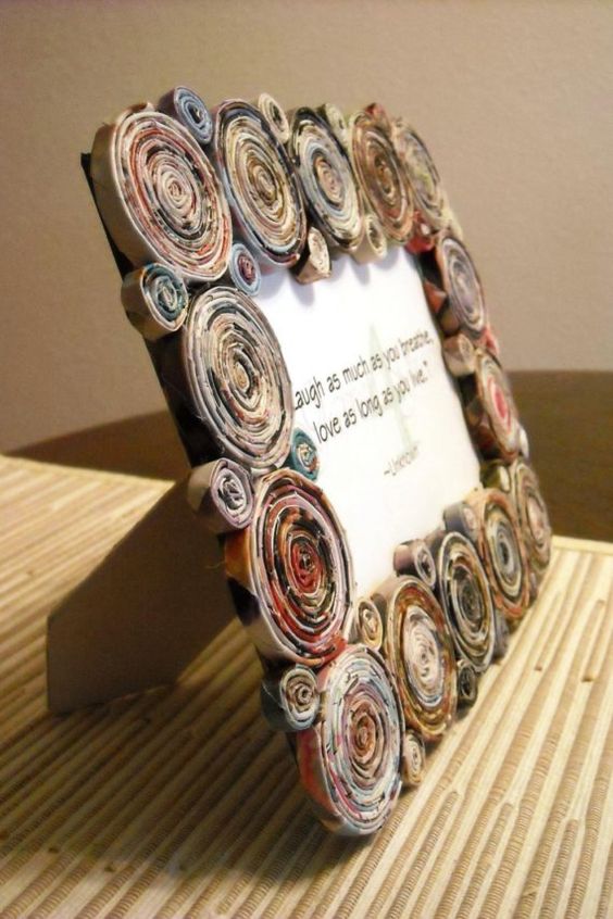 Para a decoração de sua casa vale fazer molduras, enfeites e até mesmo customização de porta-retrato ou quadro com canudos de jornal enrolados.