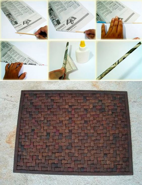 Para a sua mesa você pode fazer um jogo americano com jornal trançado. Neste caso você pode achatar os canudos de jornal, que podem ter a espessura de sua preferência, até mesmo bem larga.