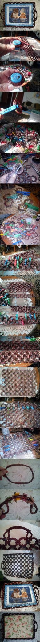 Faça uma bandeja com canudos de jornal, e esta bandeja pode ser usada para servir itens leves ou para ser um objeto de decoração, caso você opte por deixá-la encostada em uma parede ou sobre um suporte de sua preferência.
