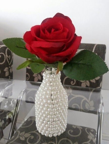 As pérolas tendem a deixar o objeto onde estão posicionadas com estilo pendendo para o romântico, por isso, se você busca este estilo para os seus itens, aposte sem medos em pérolas, até mesmo em garrada de vidro, por exemplo, para transformá-la em vasinho estilizado para as suas flores.