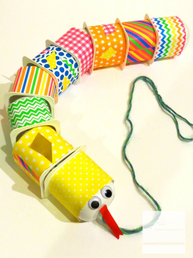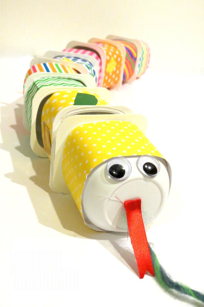 Para fazer uma simpática cobrinha com potes de iogurte você irá precisar de: