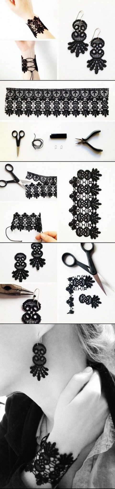 Se você gosta de fazer bijoux você pode também fazer acessórios de renda. Brincos, pulseiras e colares ficam lindos e com visual romântico quando a renda entra em cena. Só não use um look inteiro com renda, composto por sapato, roupas e acessórios rendados. Escolha um único item customizado com a renda para montar o seu look.