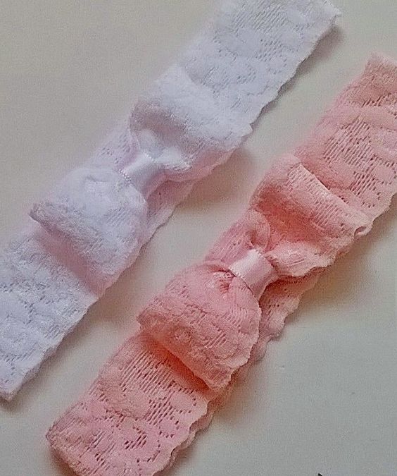 Bebês ficam lindas com tiara de renda decorada com lacinho feito da mesma renda.