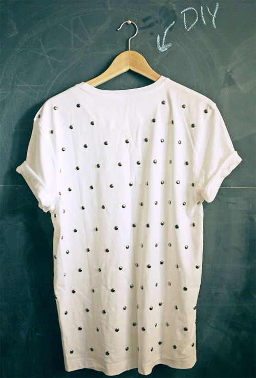 E há também as muitas customizações de roupas que podem ser feitas com tachinhas. Customize colarinhos de camisas, espaço dos botões da camisas, calças jeans, shorts e saias jeans, camisetas, vestidos, barras de calças, entre outros, com as tachinhas.