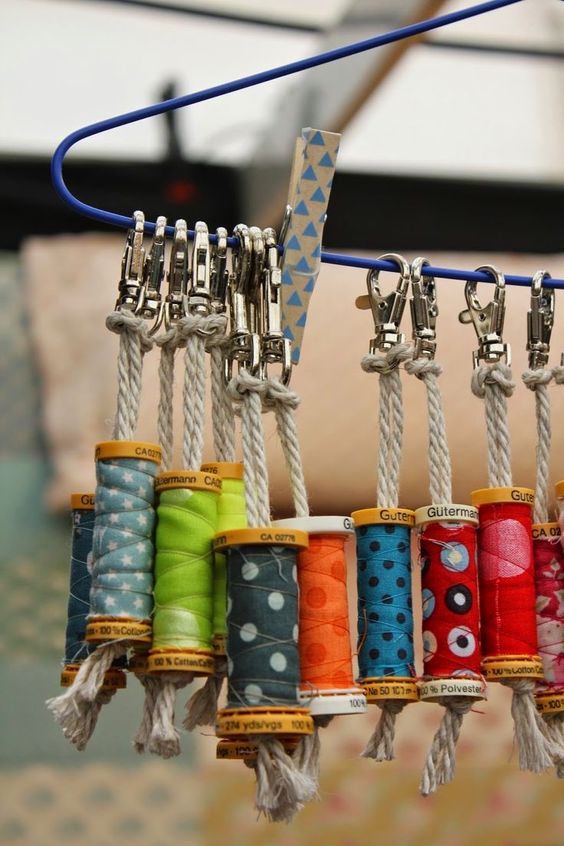 Para as costureiras há os chaveiros de carretel de linha para costura, que organizam e decoram a bolsa ou o local onde ficam posicionados.
