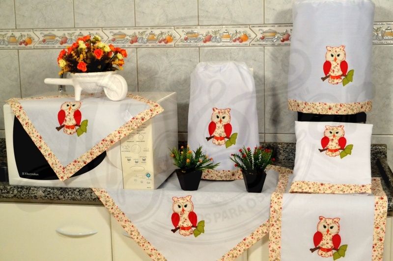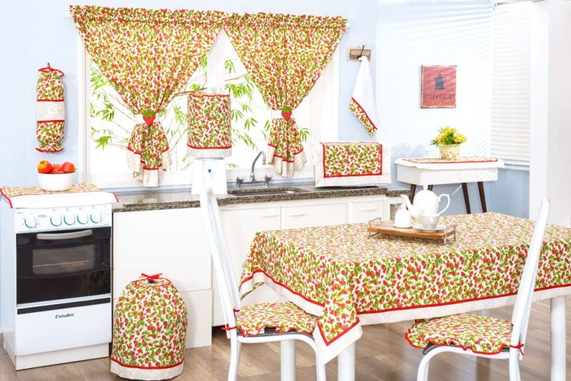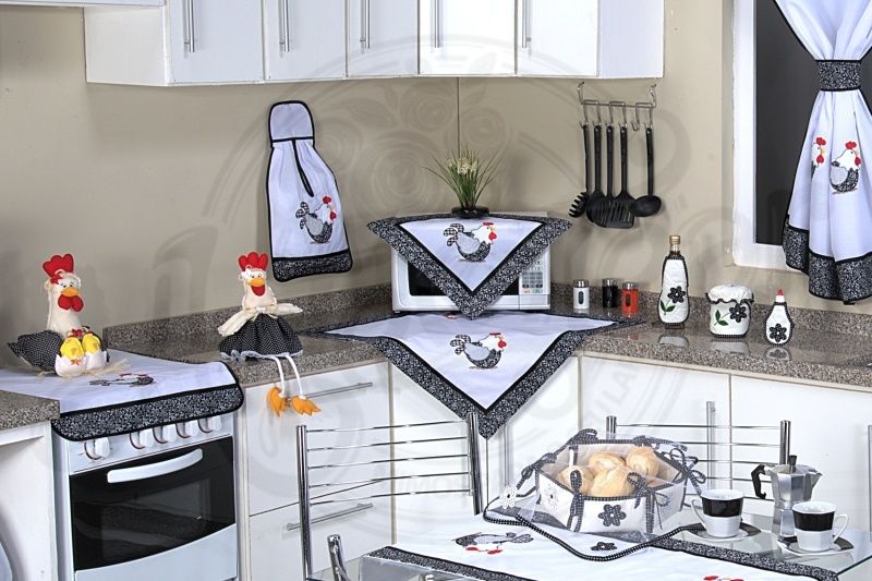 O número de peças do seu jogo de cozinha também pode ser o que você desejar. Você pode fazer um jogo bem grande, com muitas peças, até mesmo com tapetes e a cortina da cozinha possuindo o mesmo material e estilo que o material e estilo das peças menores do seu kit de cozinha. Joguinhos de cozinha pequenos, com toalha para mesa e apenas mais uma ou duas peças pequenas para os outros itens também podem fazer parte da sua cozinha, se assim você preferir.
