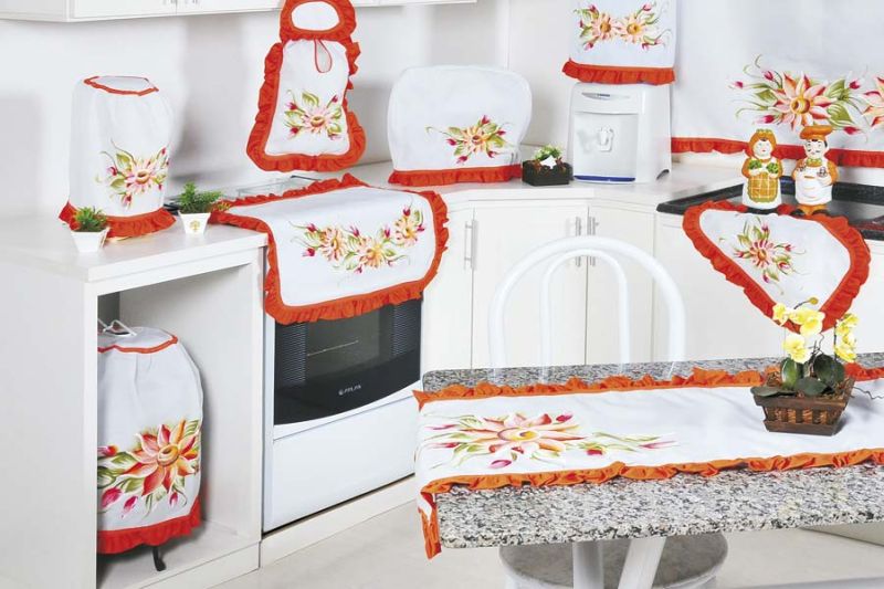 Você pode escolher jogos de cozinha de crochê, jogos de cozinha de tecido com pintura, kits de cozinha de crochê e tecido ou jogos de cozinha com um grande mix de técnicas artesanais. Basta usar a criatividade e imaginação.