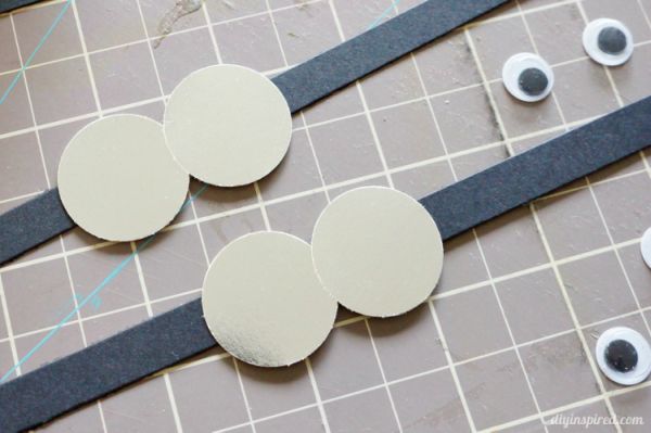 Em seguida, cole o círculo vazado cinza sobre a tira de papel preto.