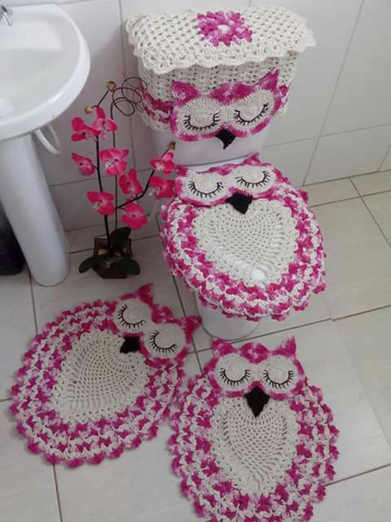O jogo de banheiro de coruja pode ter qualquer cor. Veja agora modelos com a cor rosa, e também com outras cores. Lembrando que o crochê pode ser a sua segunda ou terceira fonte de renda. Aposte sem medos neste tipo de trabalho para viver dignamente.