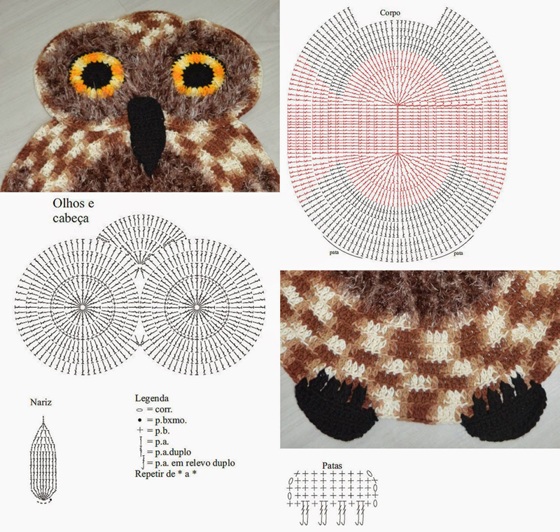 Se você quiser pode fazer apenas o tapete de crochê de coruja do jogo de banheiro, para colocar em outros cômodos de sua casa. Este tapete coruja com gráfico vai facilitar a sua vida, pois basta fazer igual ao gráfico.