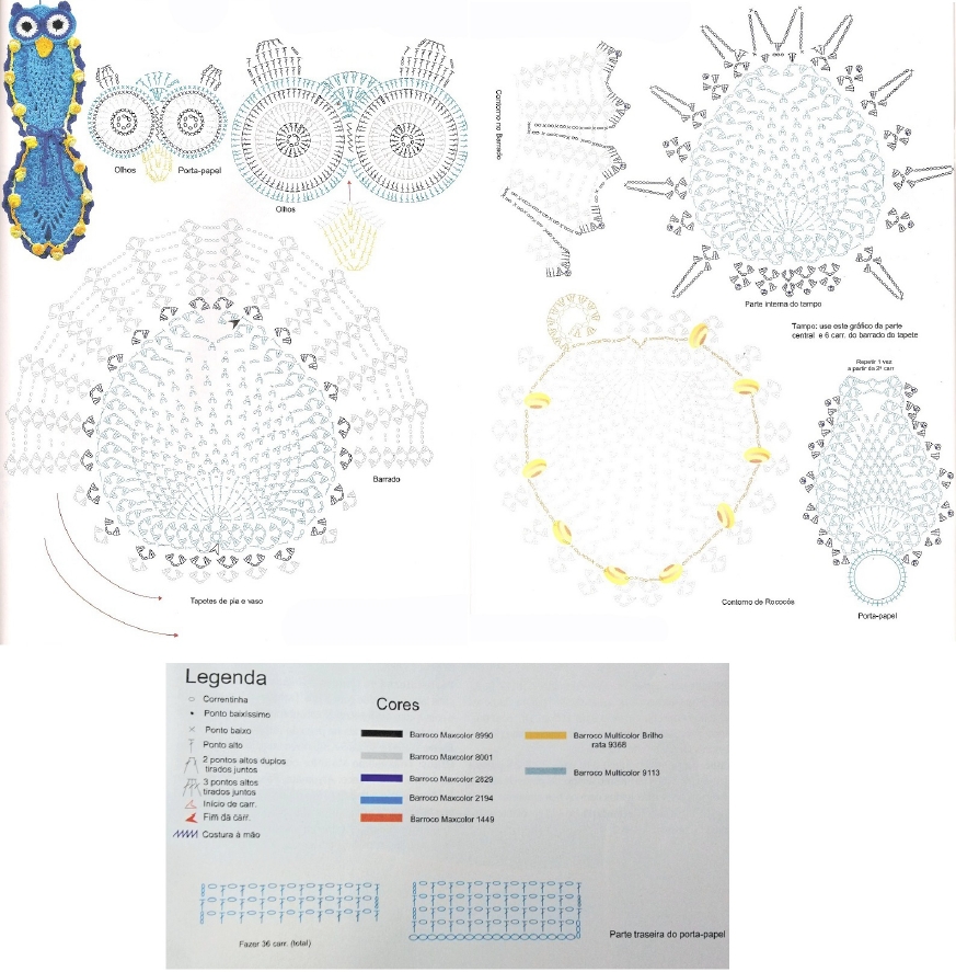 - Gráfico de jogo de banheiro coruja em crochê (imagem a seguir).