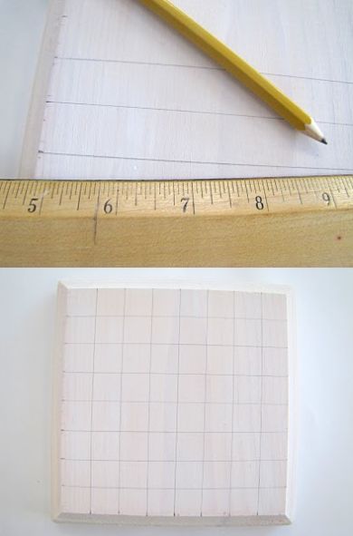 Comece pintando a placa de MDF com a tinta branca e o auxílio do pincel. Aplique uma camada, deixe secar e aplique a segunda camada, para a cor ficar bem uniforme. Depois meça, com o auxílio da régua e do lápis, e risque, o quadriculado do seu jogo, com quadrados com medidas exatas e idênticas.
