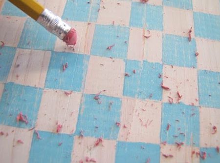 Em seguida, “apague” ainda mais a tinta que você usou para pintar o seu tabuleiro, utilizando uma borracha, caso você queira.