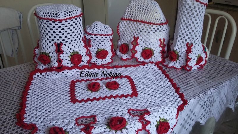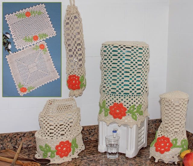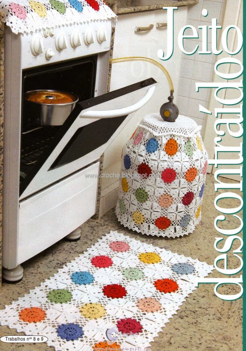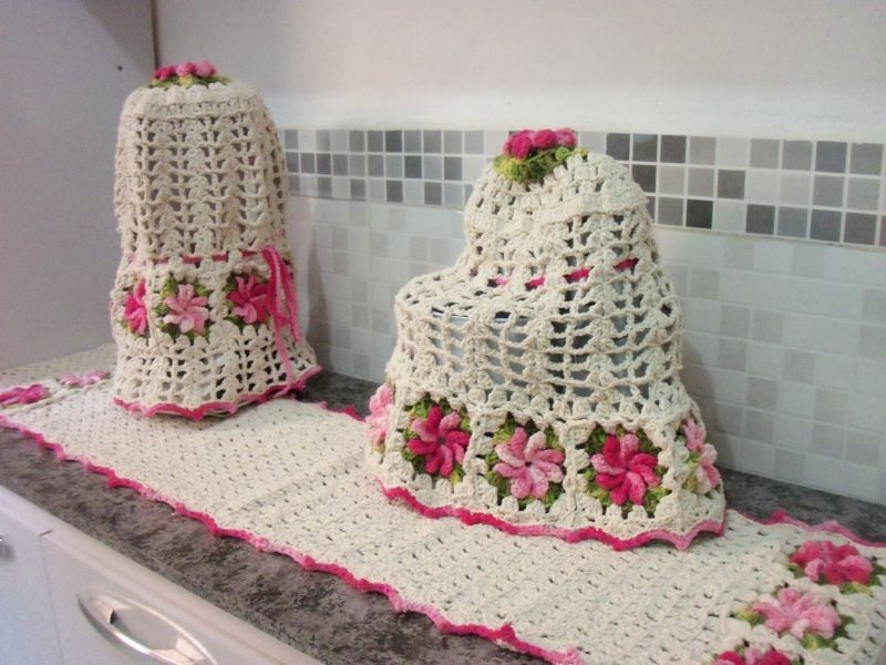 Se você sabe fazer peças elaboradas de crochê, com certeza pode fazer um jogo para a sua cozinha com muitas peças, até mesmo para os seus eletrodomésticos.