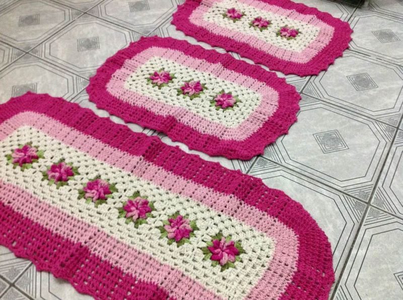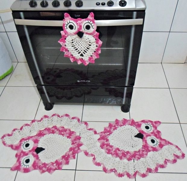 O jogo de passadeira é um dos itens mais procurados, quando se fala em crochê para cozinha. O conjunto básico é formado pelo tapete mais longo, estilo passadeira, e dois menores, no estilo capacho. Os padrões clássicos não saem de moda, mas se você busca inovar, ideias como tapetes em formato de coruja podem lhe agradar.