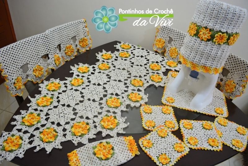 Conjuntos florais também são bastante procurados, quando se fala em crochê.