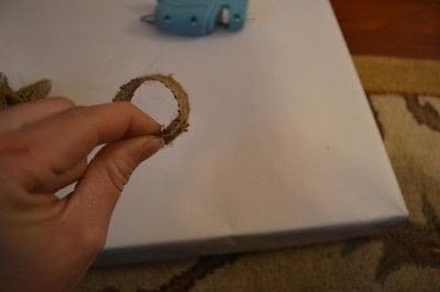 Em seguida, faça um círculo com a tirinha menor de juta, colando as duas pontas.