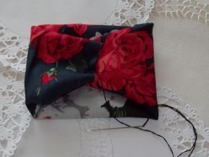 Costure o meio do laço, para ficar firme.