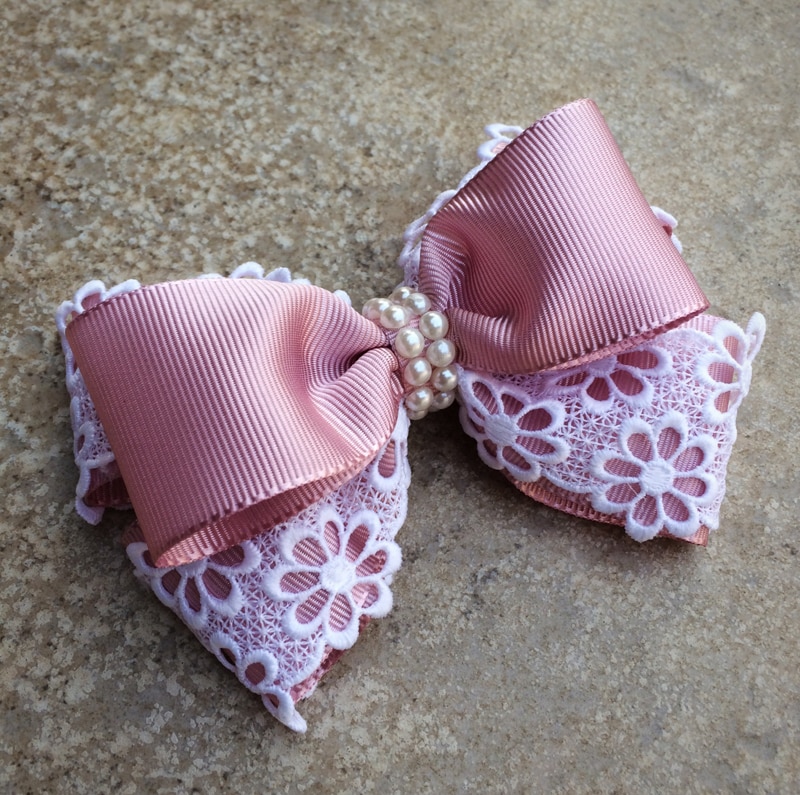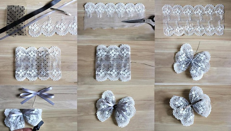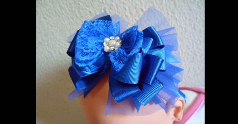 O seu laço de fita larga pode ser bem sofisticado, conseguido com o procedimento de como fazer laços de fita para cabelo com fita de renda. Pegue uma fita de renda, ou crie uma costurando dois bicos de renda, junte as pontas e amarre no meio. Faça um laço triplo e costure sobre o laço de renda. Coloque em uma presilha ou tiara.