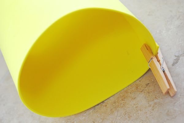 Em seguida, enrole o retângulo que vai ficar por dentro e prenda as pontas com os prendedores para roupas.