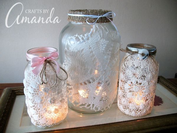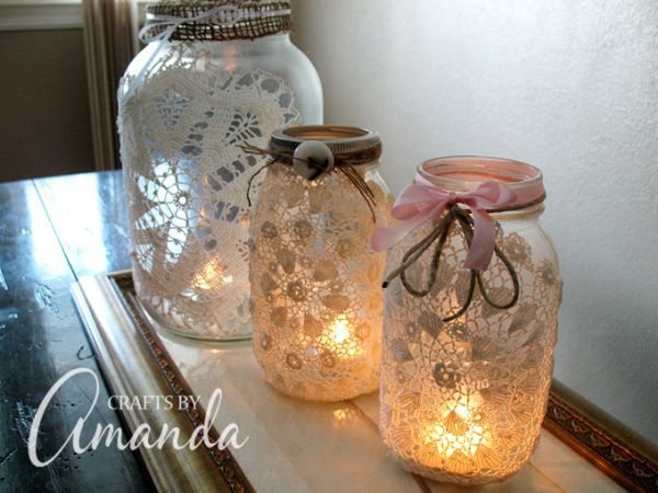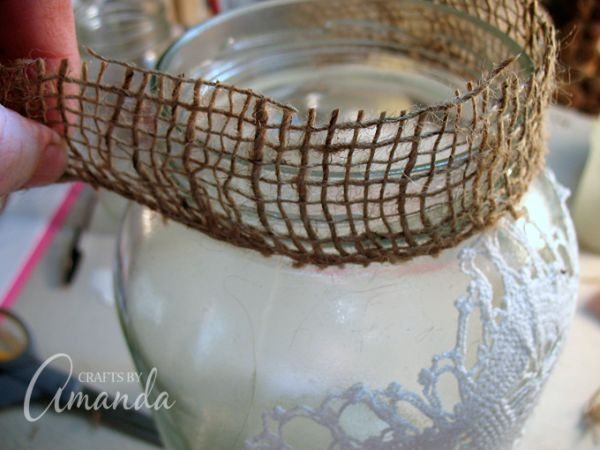 Créditos:http://craftsbyamanda.com/burlap-doily-luminaries-rustic-meets/