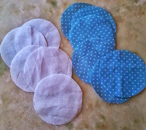 Comece cortando círculos para fazer os fuxicos, com medida de 6 cm e sendo 6 círculos do tecido estampado e 5 círculos do tecido liso.