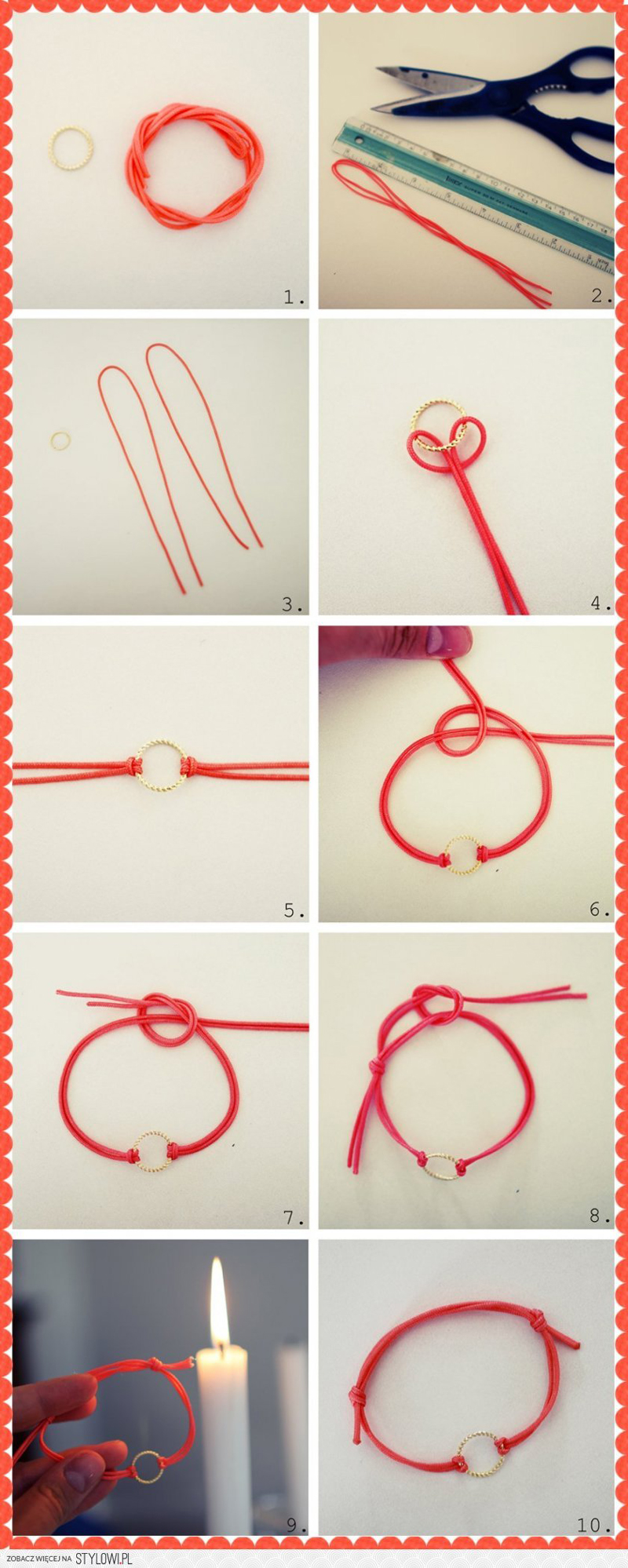 Comece separando todos os materiais que você vai utilizar em seu artesanato. Corte dois pedaços de cordão e dobre-os ao meio. Estes pedaços de cordão devem ter tamanho suficiente para serem cruzados e ainda poderem passar pela mão. Pegue um pedaço de cordão, passe a parte dobrada, de cima para baixo, pela argola, e passe as pontas do cordão por dentro da dobra. Aperte. Faça o mesmo do outro lado da argola com o outro pedaço de cordão. Com um pedaço de cordão faça uma laçada e passe o outro pedaço por dentro, parte o nó. Faça o mesmo do outro lado, com o outro pedaço de cordão, para que a pulseira possa ser afrouxada e apertada conforme a necessidade. Para finalizar a sua peça, queime as pontas do cordão para não desfiar. E está pronto! Uma linda e delicada lembrancinha para a sua festa de quinze anos. E para os homens você pode oferecer um chaveiro, por exemplo.