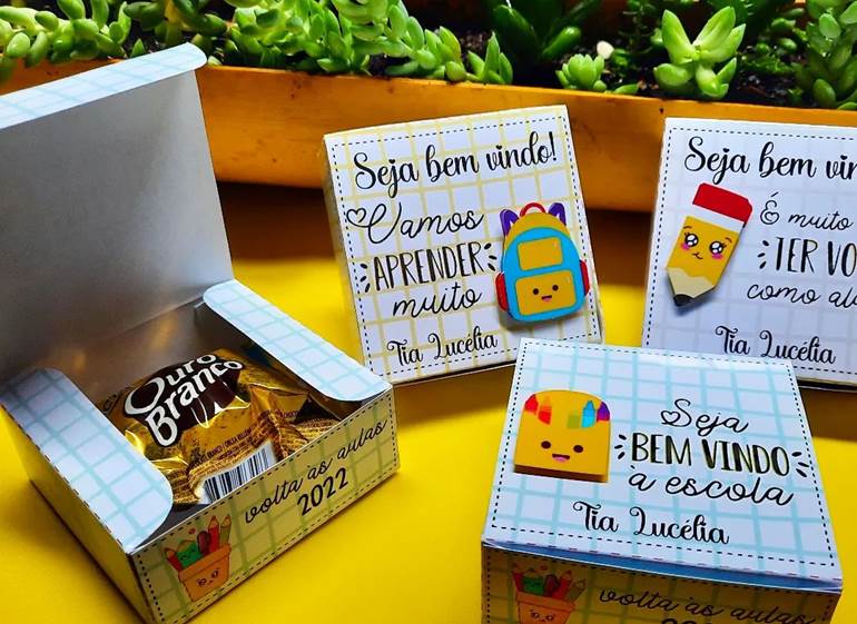 Além de ser uma surpresa fofa e singela para as crianças, elas vão se sentir mais acolhidas e ficarão felizes em receber algo para lembrar do primeiro dia.