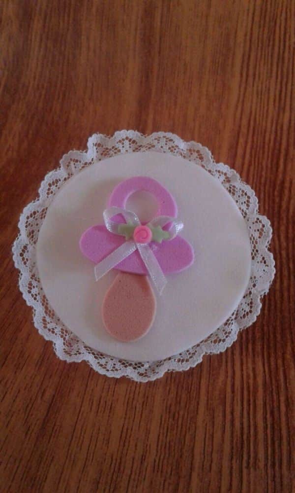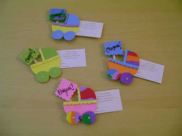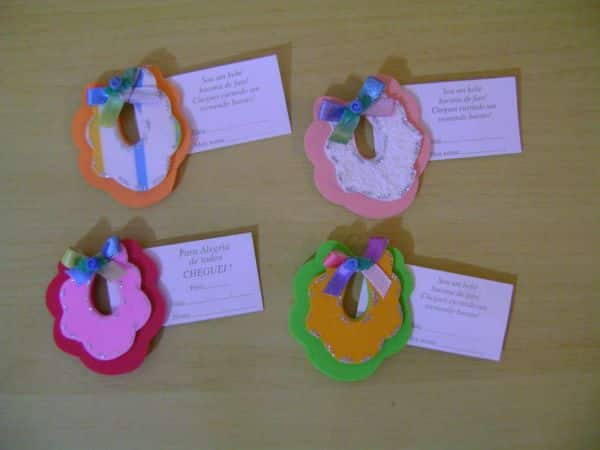 O EVA, além de barato, ainda é fácil de ser trabalho e pode virar fofíssimas lembrancinhas para os bebês.