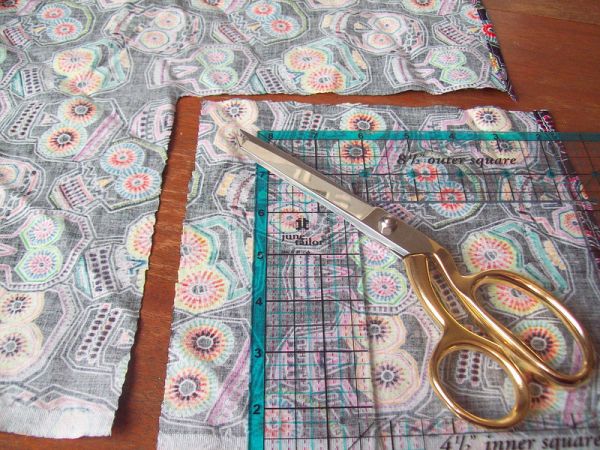 Logo após, corte um quadrado em cada canto do seu tecido.