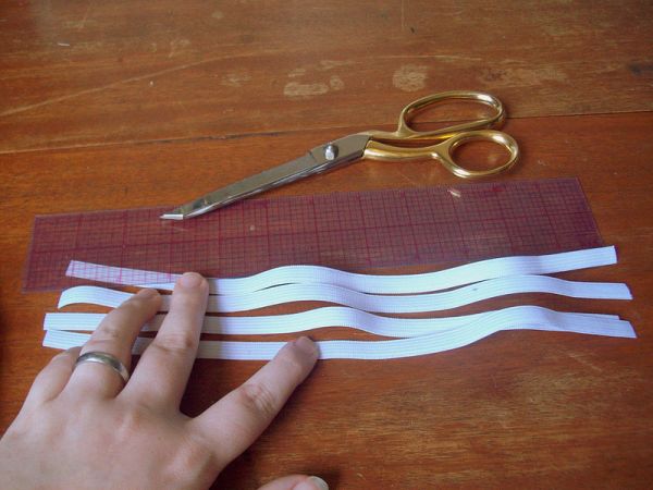 Agora, corte pedaços de elástico para acomodar nos cantos, com um tamanho médio de 30 cm cada pedaço.